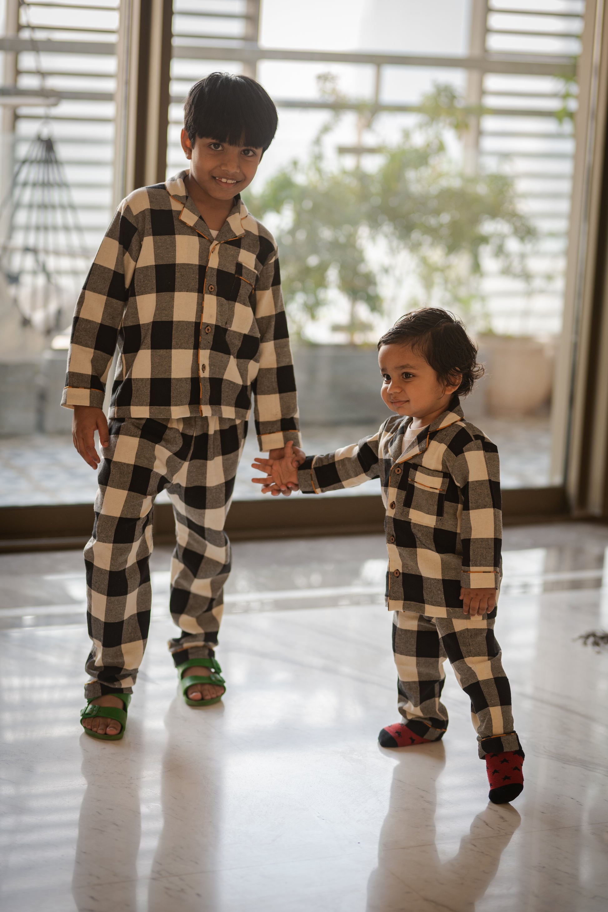 Introducing our cozy and adorable winter flannel night suits. Made with soft, snuggly flannel fabric, these night suits are designed to keep your little ones warm and comfy all night long. Whether it's storytime before bed or a chilly winter's sleep, these night suits are the perfect companions for dream-filled nights and happy mornings.