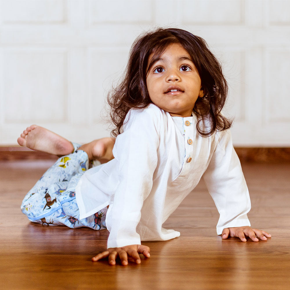 Dress your little one in the most comfortable all day suits created just for them. Easy to move in, the organic bamboo fabric allows your baby’s skin to breathe and stay cool throughout the day. Perfect for all season, this all day suit comes with a comfortable fit and a fashionable silhouette. Add just the right playful feel with our signature prints to your baby’s look.